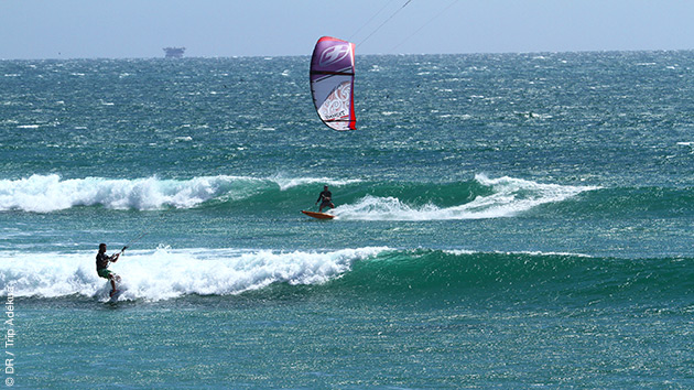 Le clapot permet d’envoyer des sauts plus facilement pour apprendre à orienter la carène face au vent qui va plaquer la planche à vos pieds. Les vagues… Pensez surf surtout, vous ne reviendrez plus au twin tip une fois que vous aurez goûté aux courbes en planche directionnelle !