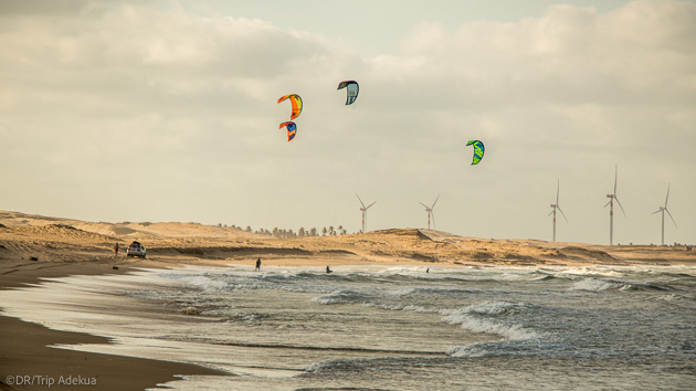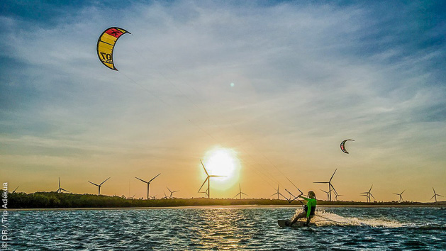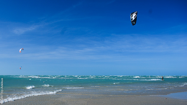 Entre lagon plat, vagues et vents constants, tous les kitesurfeurs y trouvent leur bonheur pour progresser et s’éclater : eau plate pour le freestyle, mer ouverte pour le waveriding, et même des downwinds organisés vers Jericoacoara ou plus simplement vers Ilha do Guajiru à 35 km.