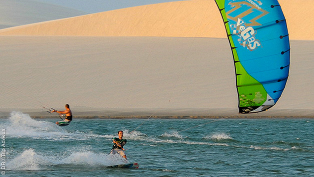 Il suffit donc de vadrouiller un peu en buggy pour trouver de belles lagunes intérieures et d’autres spots plus beaux les uns que les autres, et toujours ventés. D’Icaraizinho (à 130 km au sud), jusqu’à Barra Grande, c’est une immense plage avec les spots de kite qui s’enchaînent : Icaraizinho, Ilha Do Guajiru, Jericoacoara, Prea… Autant vous dire que les downwinds dans cette région du Brésil sont incontournables !
